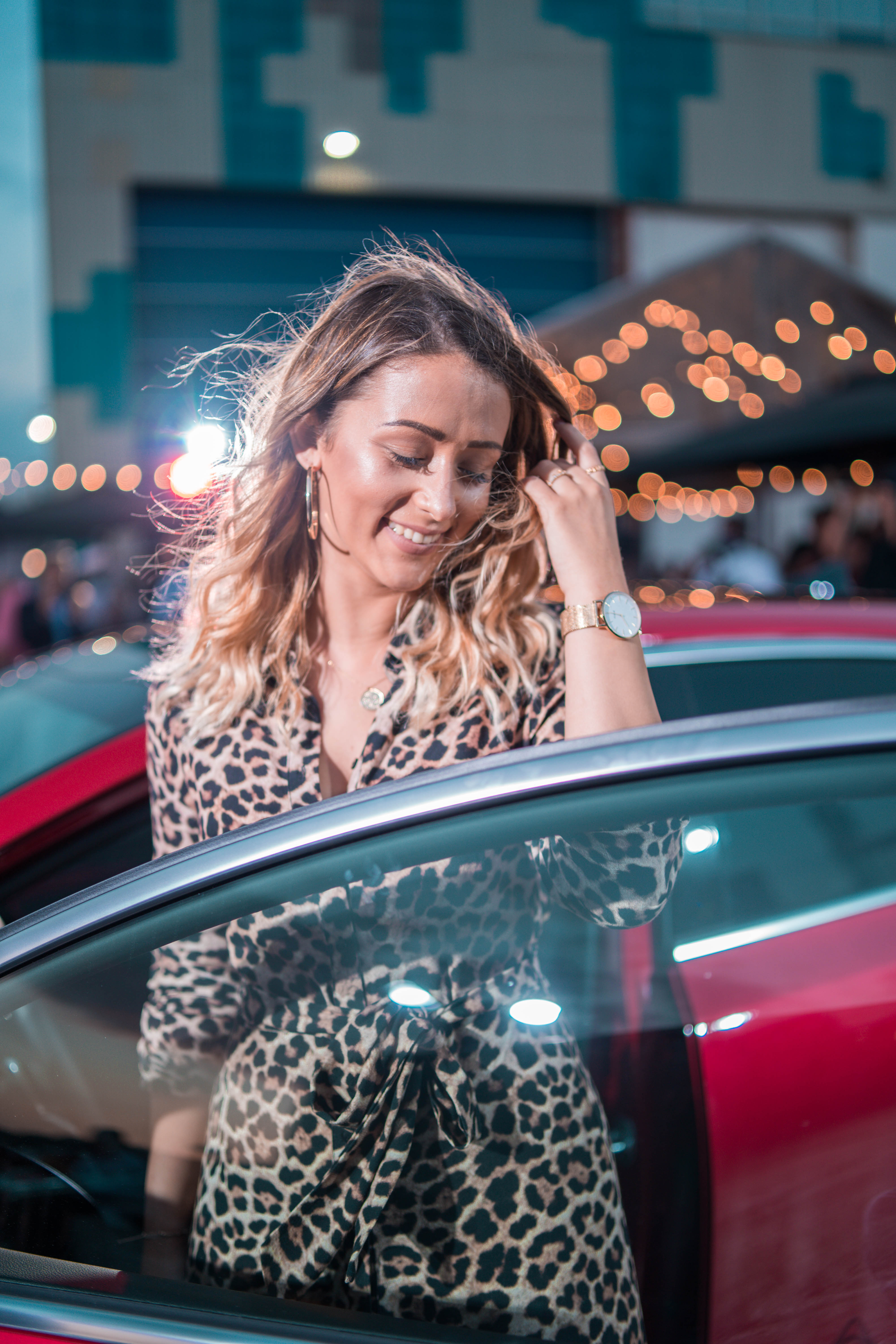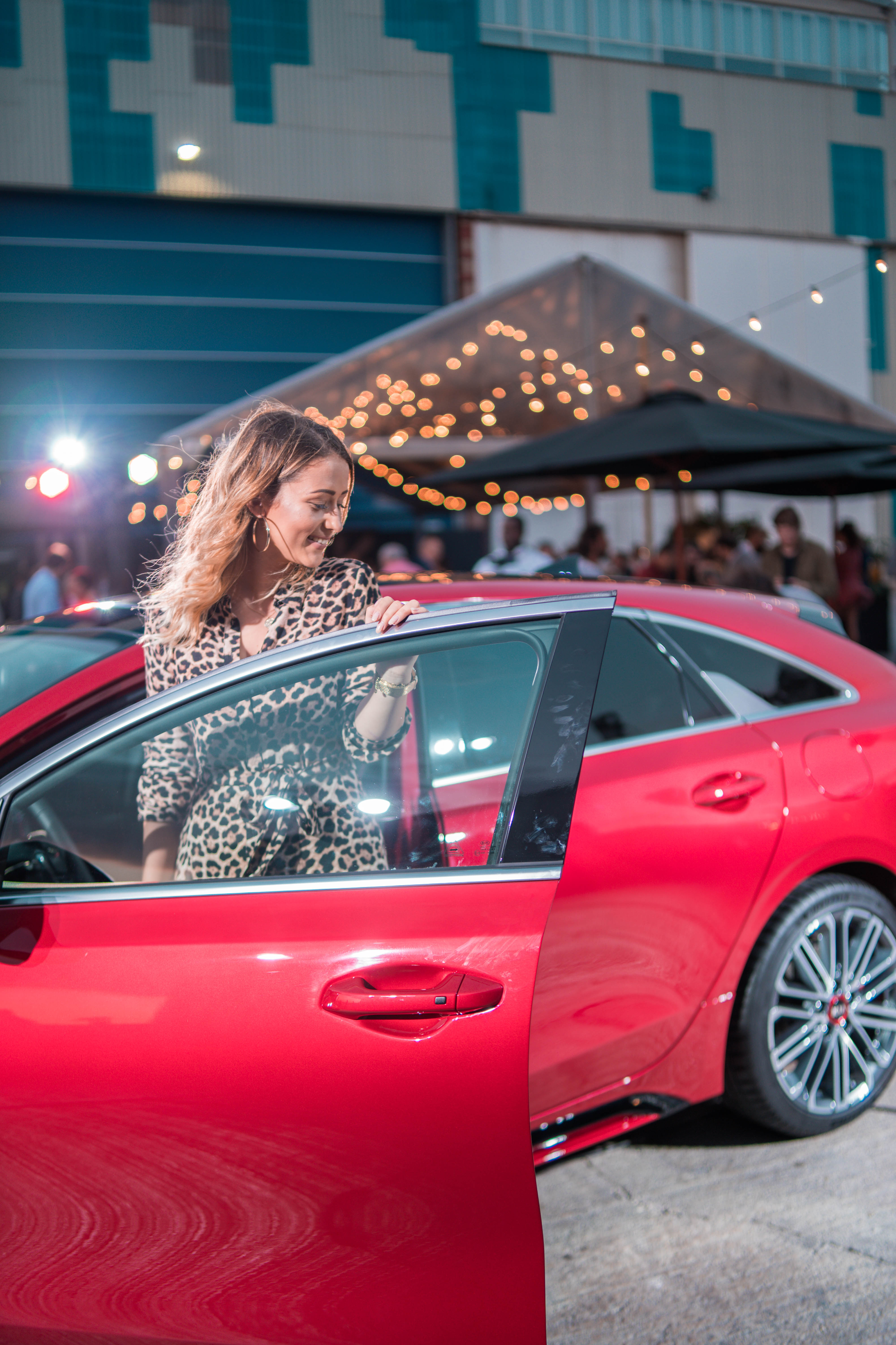 18:00 Nachdem ich mich in mein neues und eigens für den Anlass ausgesuchtes Kleid von ZARA geworfen und mich ein bisschen aufgefrischt hatte, ging es endlich zum großen Highlight des Tages, der Kia ProCeed Media Lounge. Influencer, Blogger, You-Tuber und Medien aus ganz Europa waren gekommen und warteten gespannt auf die Enthüllung des neuen Kia ProCeeds. Bereits beim Betreten der Location, einem riesigen Hangar für Jachten direkt am Hafen von Barcelona (Barcelona Nautic Center), war ich überwältigt von den Eindrücken, die mich dort erwarteten. Es duftete nach frisch gekochtem Essen, während bereits die ersten Drinks geschlürft wurden. Auch die Möglichkeit für ein spontanes Tattoo wurde geboten. Wo gibt’s denn das? Es musste natürlich nicht das Logo von Kia sein ;). Für die Herren der Schöpfung stand sogar ein eigener Barber Shop zur Verfügung. Was sich währenddessen aber unter dem roten Tuch befand, konnte man nur erahnen.