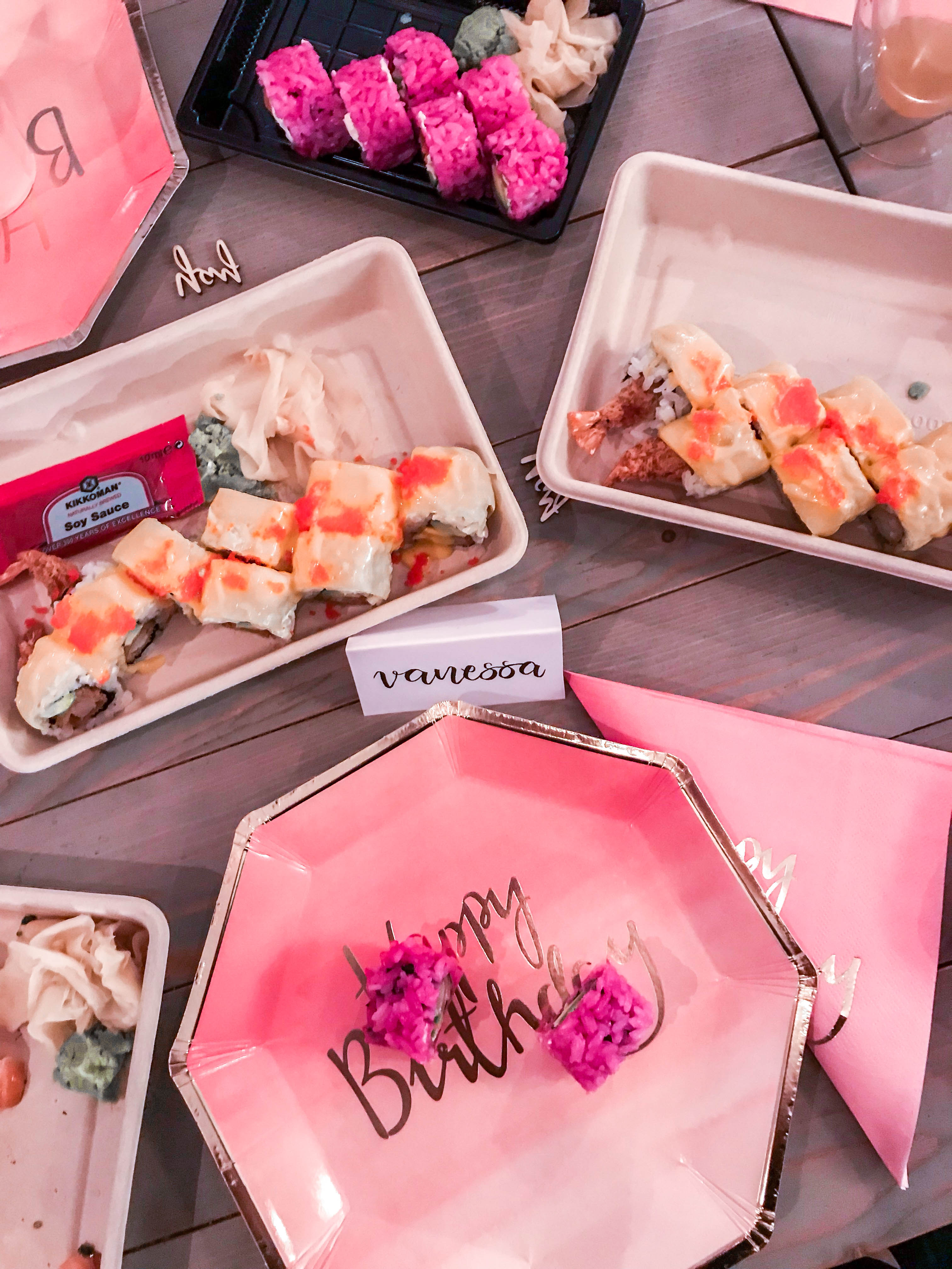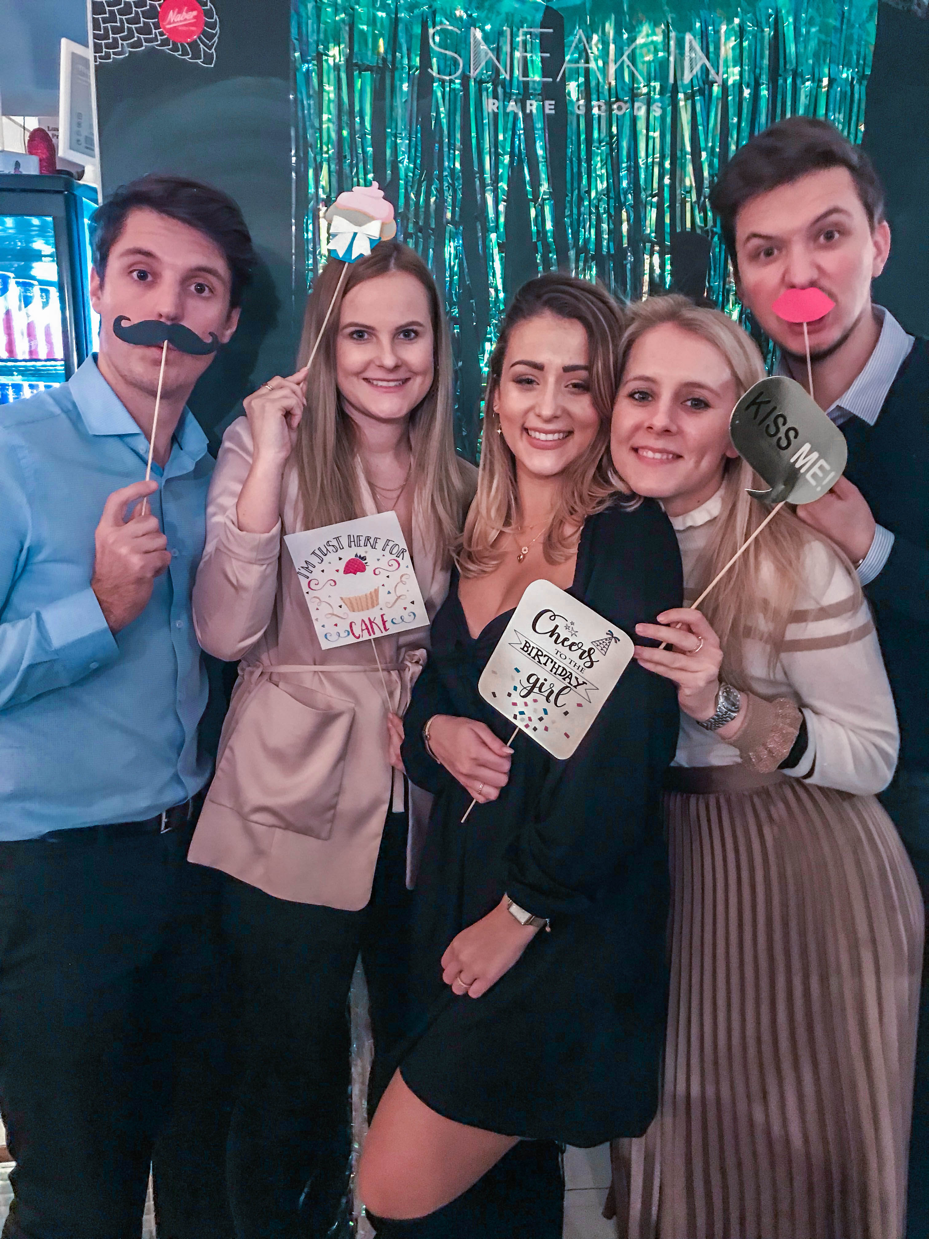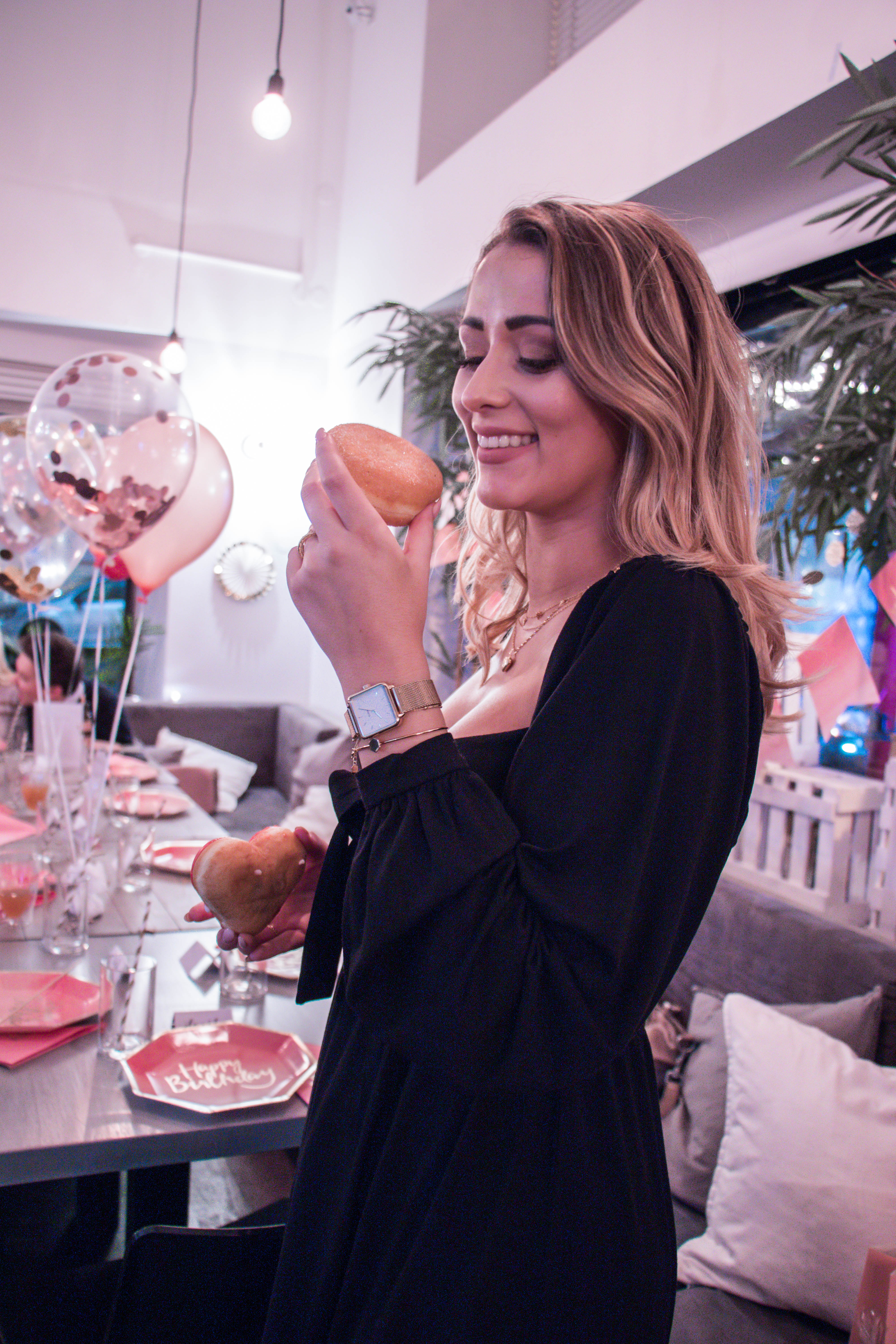 Unglaublich, wie schnell ein Tag vorbeigehen kann, wenn dieser mit tollen Aktivitäten gefüllt ist. Denn so schnell konnte ich gar nicht schauen und schon war das Highlight des Tages an der Reihe: meine Geburtstagsparty unter dem Motto „Candy“ – rosa, gold, einfach süß! Meine Gäste haben sich sogar dem Motto entsprechend, oder besser gesagt einem Farbschema nach, gekleidet, nämlich in den Farben meines Instagram-Feeds ;). So hat das Gruppenfoto super süß ausgesehen und die Motto-Faulen (wir alle wissen, dass es sie gibt) waren auch glücklich.